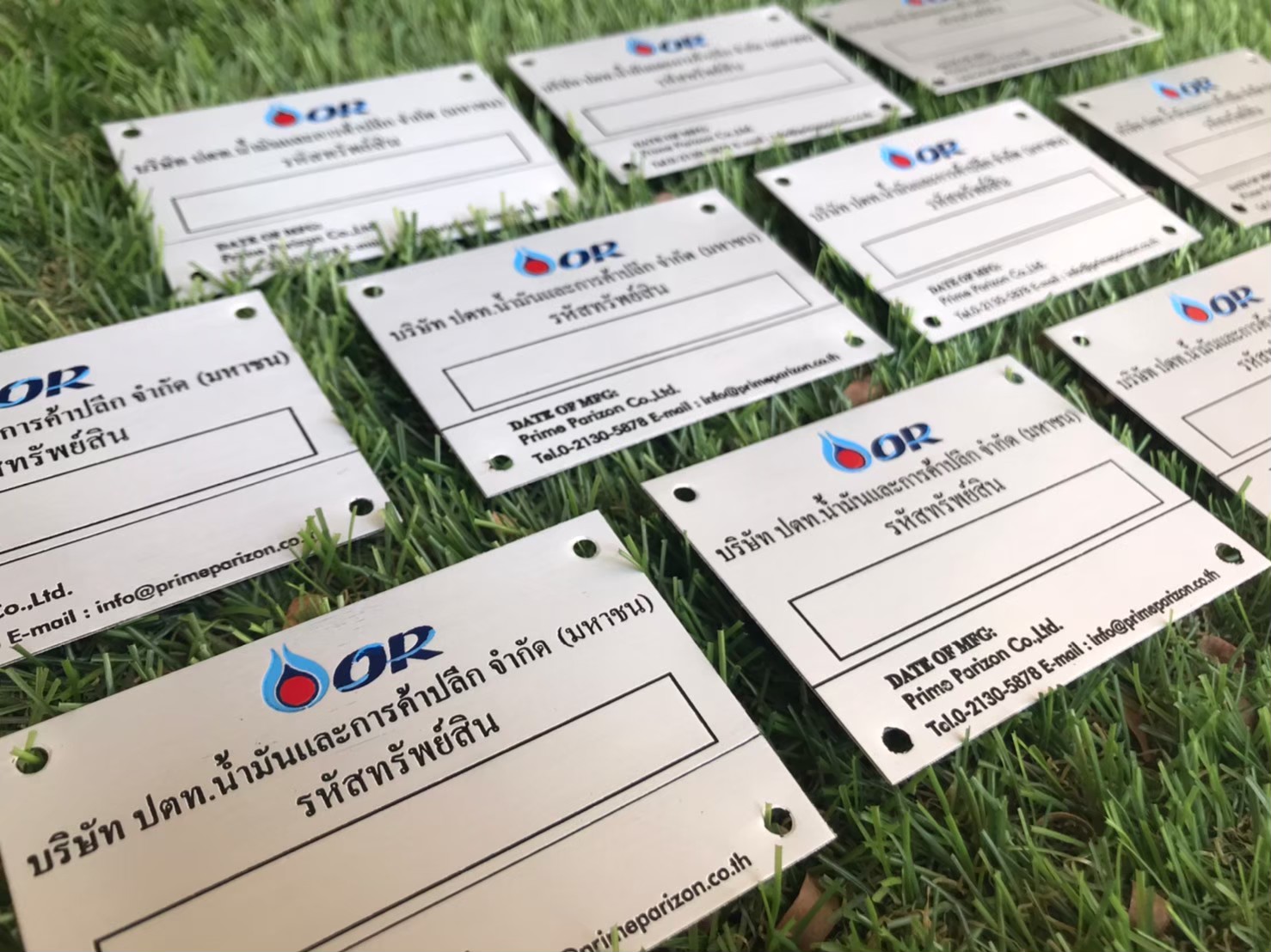 ป้ายสแตนเลสสีเงินแฮร์ไลน์ หนา 1mm กัดกรด ป้ายเนมเพลท