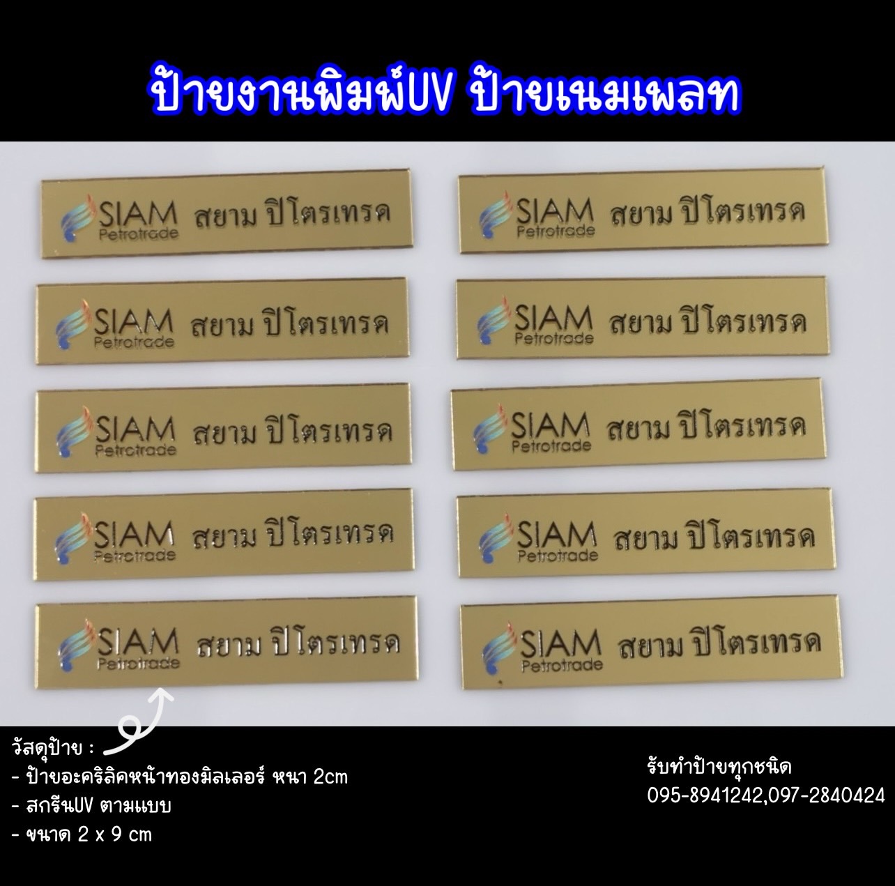 ป้ายอะคริลิคหน้าทองมิลเลอร์ หนา 2mm พิมพ์UV ตามแบบ ขนาด 2 x 9 cm